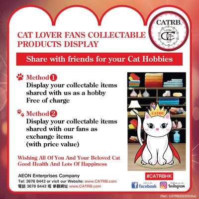 Now, Aeon Enterprises provides our Fans, Cat Display Collectable items on our website and Facebook / Instagram, shared with friends for your Cat Hobbies. We only accept Cat products (including Cartoon Cat items).